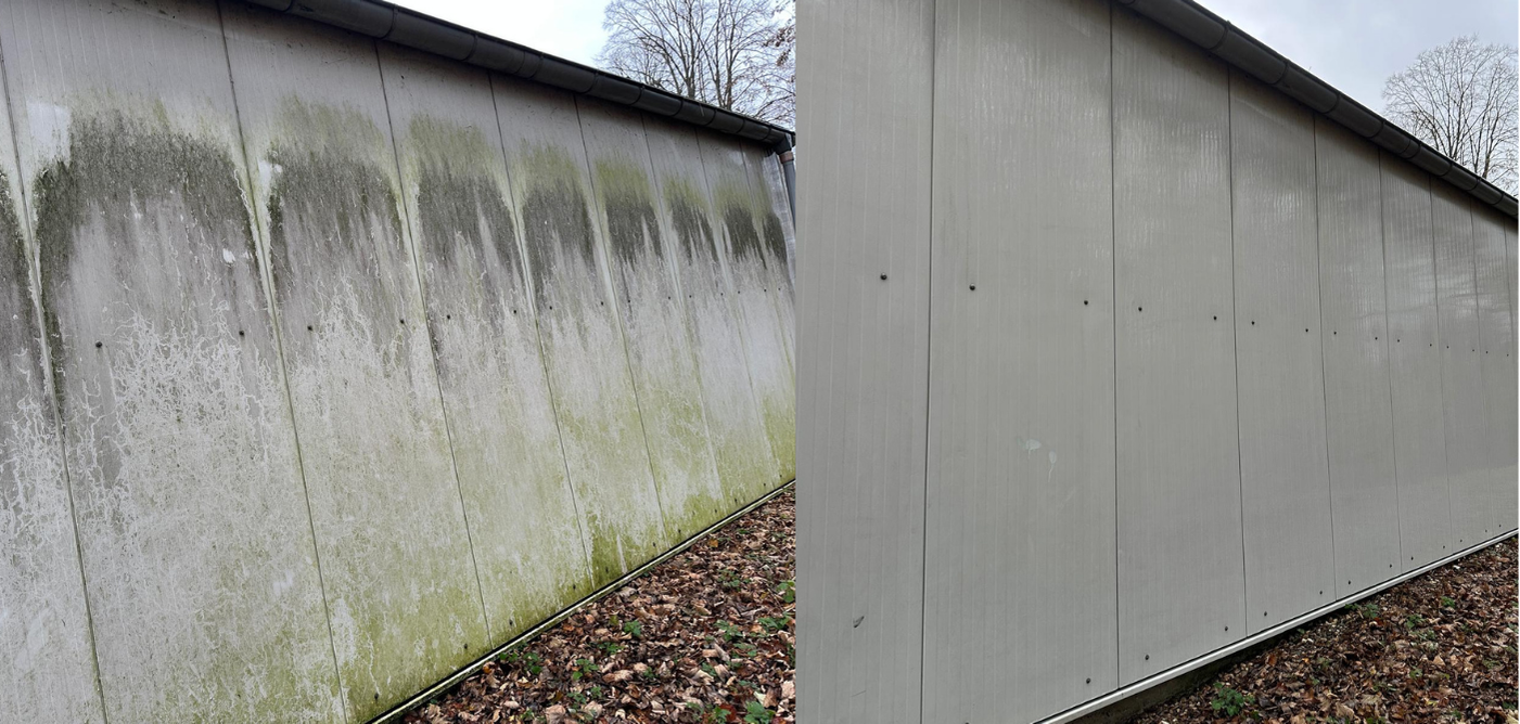 Wir beseitigen biologische Verunreinigungen gründlich und nachhaltig, sodass sich neue Beläge nur schwer wieder bilden können – für eine langanhaltend saubere Optik.