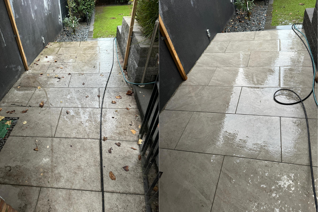 Algen, Moos, Grünbelag und festgesetzter Schmutz werden gründlich und gleichmäßig entfernt. Dadurch wird die Oberfläche nicht nur sauber, sondern auch wieder rutschfester und optisch klar aufgewertet.